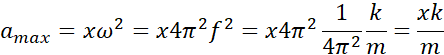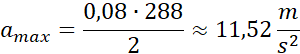 Należy obliczyć maksymalna przyśpieszenie klocka oraz wskazać położenie, w którym ta wartość zostanie osiągnięta.
