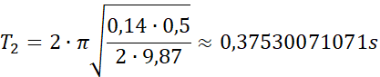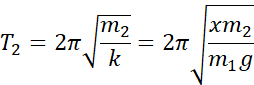 Kiedy ciężarek był zawieszony na sprężynie, działały na niego dwie siły, które się równoważyły siła sprężystości i siła ciężkości, były sobie zatem równe, stąd wyprowadzamy wzór na współczynnik sprężystości. Następnie rozpisujemy wzór na okres drgań, w momencie, w którym na sprężynie zawieszono klocek o masie
