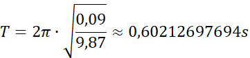 Z I zasady dynamiki, wiemy, że siły grawitacji i sprężystości równoważą się, wstawiając odpowiednie wzory, możemy wyliczyć współczynnik sprężystości, który następnie podstawiamy do wzoru na okres drgań.