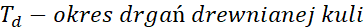 Należy obliczyć okres drgań drewnianej kuli przy podanych warunkach.