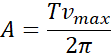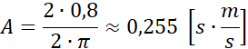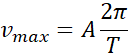 Z wykresu odczytujemy dane na temat maksymalnej prędkości oraz okresu drgań, następnie korzystając ze wzoru na prędkość maksymalną, wyprowadzamy wzór na amplitudę.