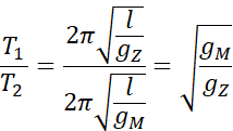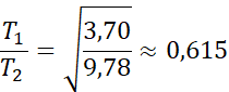 Korzystając ze wzoru na okres drgań wahadła wyprowadzamy wzór na ich stosunek.