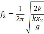 Zapisujemy wzór na okres drgań kuli przed rozcięciem. Wiemy, że zanim zaczęły się drgania, siła grawitacji była równa sile sprężystości. Na podstawie tej zależności obliczamy masę, którą podstawiamy do wzoru. Następnie takie samo rozumowanie przeprowadzamy dla przypadku po rozcięciu musimy, jednak pamiętać, że mamy wówczas do czynienia z układem dwóch sprężyn połączonych równolegle, czyli wypadkowy współczynnik sprężystości jest równy dwukrotności