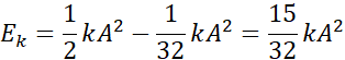 W ruchu harmonicznym prostym energia potencjalna grawitacji jest równa energii potencjalnej sprężystości, mimo że nie ma sprężyny. Energię kinetyczną obliczamy odejmując od całkowitej energii układu potencjalną sprężystości, czyli potencjalną grawitacji.