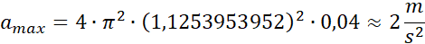 Należy obliczyć częstotliwość drgań i maksymalne przyspieszenie tego obiektu.