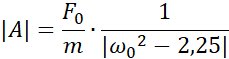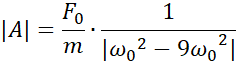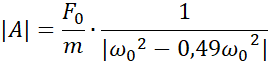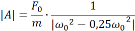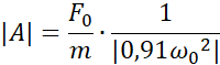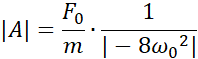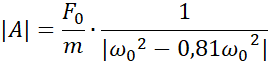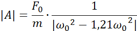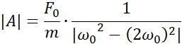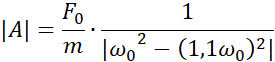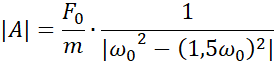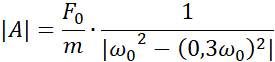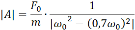 Korzystając ze wzoru na siłę wymuszającą drgania, obliczamy siłę początkową pamiętając, że jest tam dwa razy. Następnie korzystając ze wzoru na częstość kołową i amplitudę drgań wymuszonych obliczamy kolejne wartości, które wprowadzamy do tabeli.