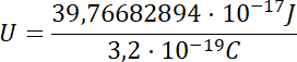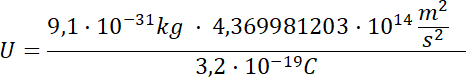 W tym zadaniu musisz obliczyć napięcie, które wymagane jest, aby elektron mógł przyjąć szybkość, którą ustaliłeś w wyniku do podpunktu b).