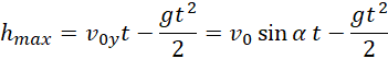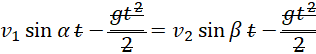Wiemy, że pociski zderzyły się w punktach maksymalnej wysokości każdego z nich. Z tego wynika, że ich maksymalne wysokości są takie same, jak i czasy, w których do nich dotarły. Zapisujemy tę zależność i wyznaczamy odpowiednią wartość.
