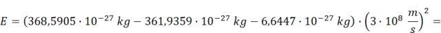 . Liczba masowa (A) maleje o 4, a liczba atomowa (Z) maleje o 2. Odczytaj z układu okresowego pierwiastków powstały w wyniku reakcji pierwiastek chemiczny. Wydzieloną energię oblicz, korzystając ze wzoru