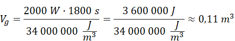 Wiedząc, że wartość opałowa (Qw) jest stosunkiem energii dostarczonej (E) przez ilość gazu (Vg). Wyznacz z niego tę ilość paliwa, wiedząc, że taka sama energia jest dostarczona przez kuchenkę – wyznacz ją ze wzoru na moc.