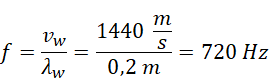 , gdzie vf – prędkość fali, λ – długość fali. Następnie oblicz długość fali w powietrzu (λp), wiedząc, że częstotliwość dźwięku nie ulega zmianie, przy przejściu między ośrodkami. Prędkości fal dźwiękowych w wodzie i w powietrzu odczytaj z tablic fizycznych.