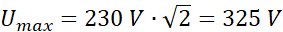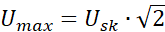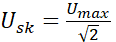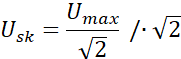 , gdzie to napięcie skuteczne w woltach, a to napięcie maksymalne w woltach.