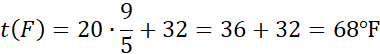 Podaj temperaturę w skali Fahrenheita dla termometru, który wskazywałby 20 °C.