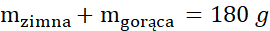 Zmieszamy 60 g wody o temperaturze 20 stopni i 120 g wody o temperaturze 100 °C.
