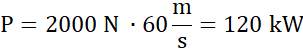 Dla prędkości około 60 metrów na sekundę moc silnika będzie wynosić około 120 kW.