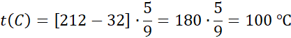 Podaj temperaturę 212 °F w Celsjuszach.