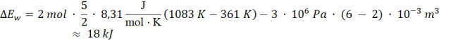 Odpowiedź: W przemianie ze stanu (1) do (2) energia wewnętrzna gazu wzrosła o około 18 kJ.