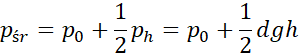 Średnie ciśnienie wody o wysokości h jest równe średniej arytmetycznej ciśnienia na dnia i ciśnienia na powierzchni. Ciśnienie wody o pewnej wysokości to suma ciśnień atmosferycznego i hydrostatycznego.