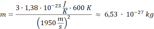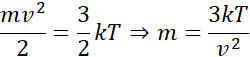 Zapisujemy wzór na energię kinetyczną cząsteczki gazu jednoatomowego na dwa różne sposoby, a następnie przyrównując je do siebie, wyznaczamy masę cząsteczki. Z wykresu odczytujemy dowolną wartość temperatury oraz odpowiadającą mu średnią prędkość, wybieramy punkt taki, by łatwo było odczytać wartość z obu osi.