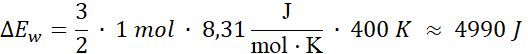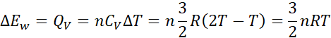 W tym zadaniu oblicz zmianę energii wewnętrznej 1 mola gazu jednoatomowego o temperaturze 127oC w wyniku przemiany izochorycznej, w której temperatura gazu wzrosła dwukrotnie.