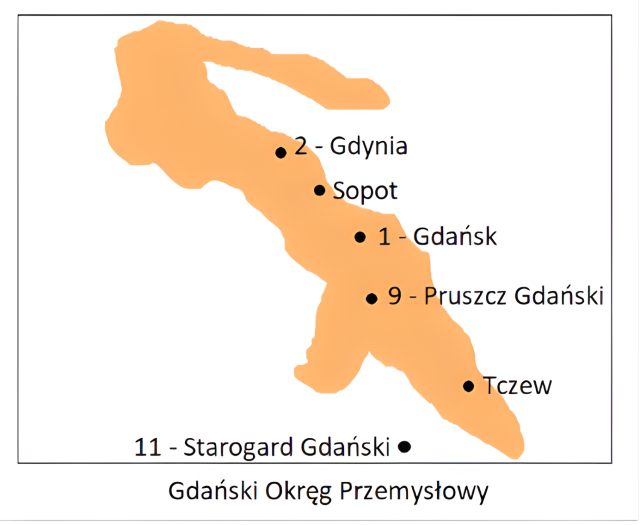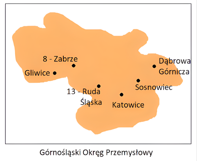 W tym zadaniu musisz zapisać nazwy przedstawionych na mapach okręgów przemysłowych oraz podpisać zaznaczone miasta.