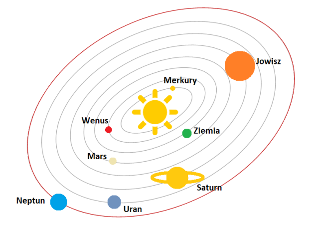 Zaznacz na rysunku kolorem czerwonym orbitę, która jest najdłuższa.