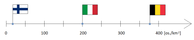 | Belgia | 11 372 000 | 30 500 | 373 os./km2 |