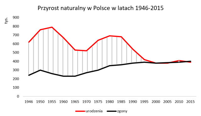 Przyrost naturalny stanowi różnicę pomiędzy liczbą urodzeń a liczbą zgonów.