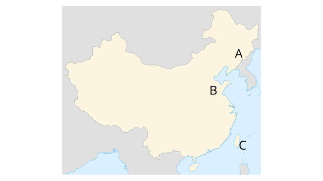 Tajwan oznaczony literą C położony jest przy Oceanie Spokojnym, zamieszkuje go ponad 23 mln ludności. Litera A odpowiada Nizinie Mandżurskiej z niezwykle żyznymi glebami (czarnoziemami), są to północno – wschodnie Chiny. Nizina Chińska oznaczona jest literą B. Na jej terenie znajdują się największe miasta tego kraju np. Szanghaj, Tiencin czy Pekin.