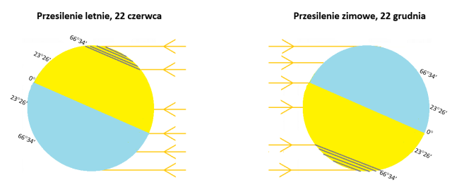 Zjawisko dnia polarnego występuje na obszarach okołobiegunowych. Na biegunie północnym dzień polarny zaczyna się 21 marca. Dzień polarny stopniowo obejmuje coraz większy obszar, a około 22 czerwca ma miejsce również na kole podbiegunowym północnym. Na biegunie południowym dzień polarny zaczyna się 23 września. Dzień polarny stopniowo obejmuje coraz większy obszar, a około 22 grudnia ma miejsce również na kole podbiegunowym południowym. Podczas dnia polarnego Słońce w ogóle nie zachodzi.