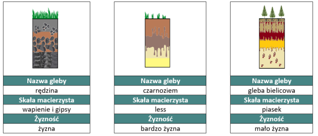 Uzupełnij tabelę, wpisując nazwę gleby przedstawionej na rysunku oraz informacje jej dotyczące.