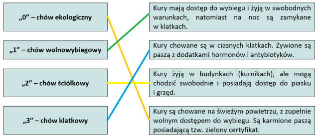 Połącz poszczególne terminy związane z chowem kur do odpowiadających im opisów.