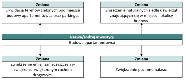 Uzupełnij schemat, wpisując zmiany, które spowodowała wybrana inwestycja gospodarcza w środowisku geograficznym miejscowości, w której mieszkasz.