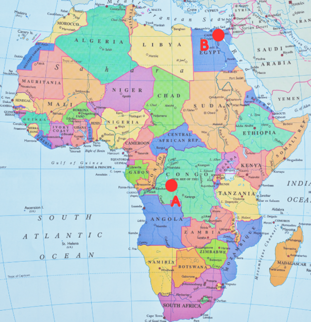 Zaznacz punkty A i B na mapie oraz podpisz typy klimatów.