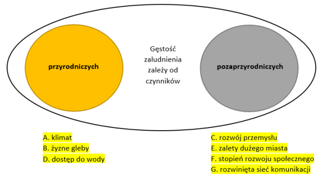 W tym zadaniu musisz wskazać, które z podanych czynników wpływających na gęstość zaludnienia zaliczane są do czynników przyrodniczych, a które do pozaprzyrodniczych.