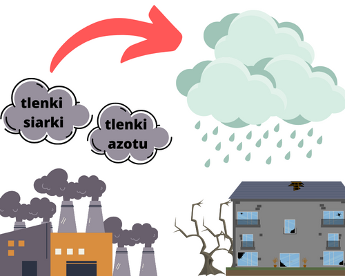 Kwaśne opady powstają w wyniku połączenia tlenków azotu i tlenków siarki z wodą. Kwaśne opady powodują uszkodzenie roślin i niszczenie upraw. Wpływają również negatywnie na obiekty budowlane.