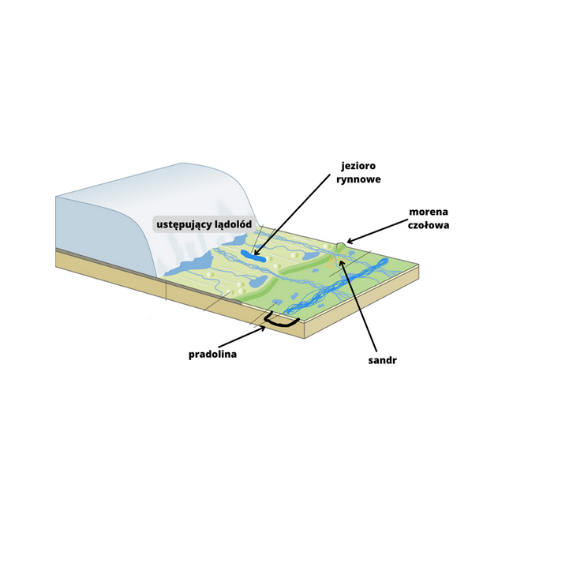 Podaj nazwy form rzeźby polodowcowej pokazane na rysunku.