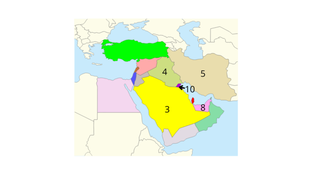 źródło: https://publicdomainvectors.org/pl/wektorow-swobodnych/Grafika-wektorowa-mapa-Bliskiego-Wschodu/14453.html, publicdomainvectors.org.pl,Grafika wektorowa mapa Bliskiego Wschodu, licencja CC.