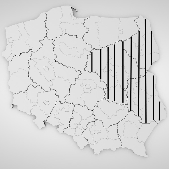 Oznacz na mapie pionowymi liniami województwa, na których fragmentach granic płynie rzeka Bug.