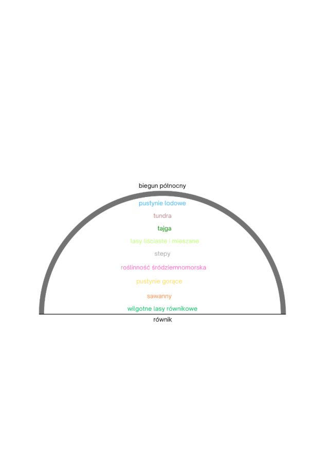 Strefy krajobrazowe są zależne od klimatu i układają się podobnie na półkuli północnej, i południowej. Począwszy od równika, są to: wilgotne lasy równikowe, sawanny, pustynie gorące, roślinność śródziemnomorska, stepy, lasy liściaste i mieszane, tajga, tundra oraz pustynie lodowe.