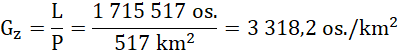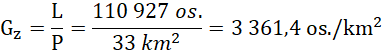 Gęstość zaludnienia określa liczbę osób zamieszkujących powierzchnię 1 km2 i wyrażana jest w os./km2.