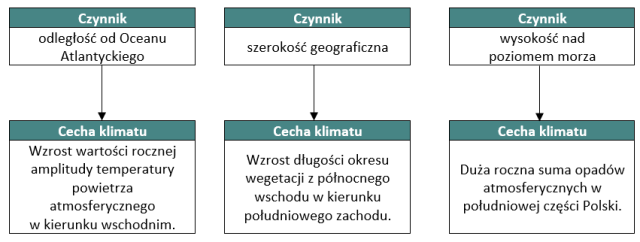 Czynniki wpływające na kształtowanie klimatu Polski to: