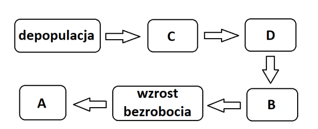 Uzupełnij podany schemat tak, aby powstał ciąg przyczynowo-skutkowy przedstawiający wpływ depopulacji w Polsce na poziom życia społeczeństwa.
