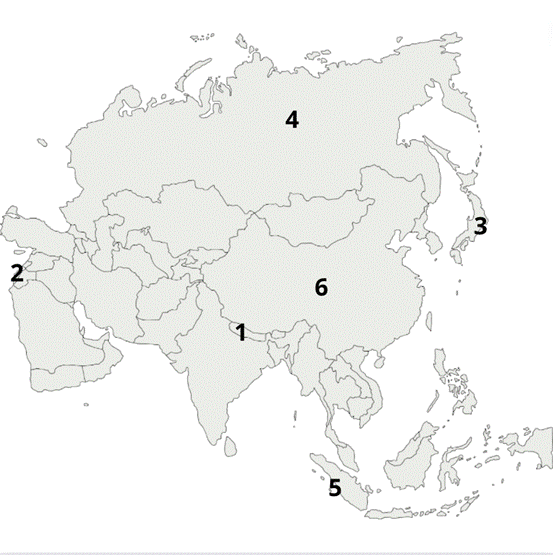 · Różnorodność klimatyczna, na przykład: wilgotne lasy równikowe (np. Malezja) i klimat podzwrotnikowy suchy (np. Chiny).
