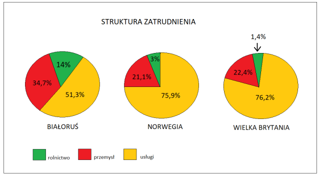 Im wyższy poziom rozwoju gospodarczego państwa, tym większy udział zatrudnienia w usługach oraz mniejszy w rolnictwie.