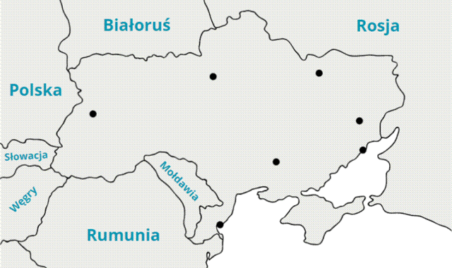 Zaznacz na mapie państw graniczących z Ukrainą.