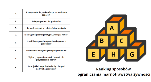 W tym zadaniu musisz stworzyć piramidę, która zobrazuje ważność sposobów eliminowania marnotrawstwa żywności.