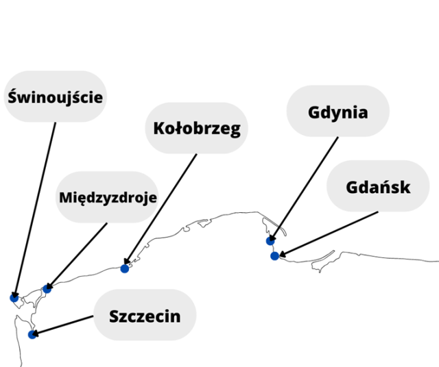 W tym zadaniu musisz podpisać na mapie porty morskie na podstawie tabeli w zadaniu 5.