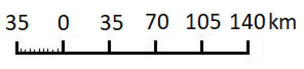 Skala 1 : 3 500 000 oznacza, że 1 cm na mapie odpowiada 3 500 000 cm odległości w rzeczywistości.
