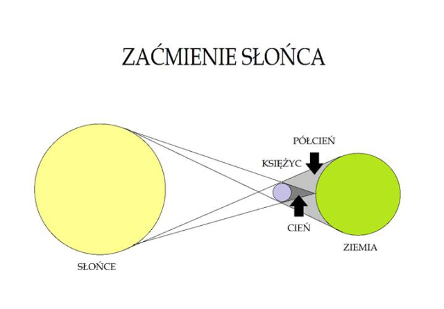 Wykorzystując rysunek, wytłumacz, jak powstaje zaćmienia Słońca i Księżyca.